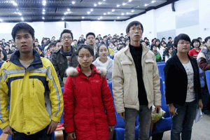 随后,校党委副书记卢思锋为学员们带来了党课第一讲——《国情与发展》,详细地分析了在“十一五规划”中中国取得的成就与存在的问题,唤起了广大学员的自尊心和自豪感。卢书记强调,在座学员身上应肩负着报效祖国、服务人民、回馈母校的使命和责任。课上,学员们不时为卢书记的精彩讲授报以热烈的掌声。