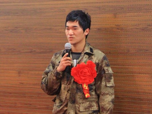 今年退伍返校的2位学生代表发言。他们谈了在部队的收获和取得的成绩,并表示要在复学后继续发扬在部队学到的优良传统和作风,全力投入到学习生活中来。其中一名同学在部队光荣的加入了中国共产党。
