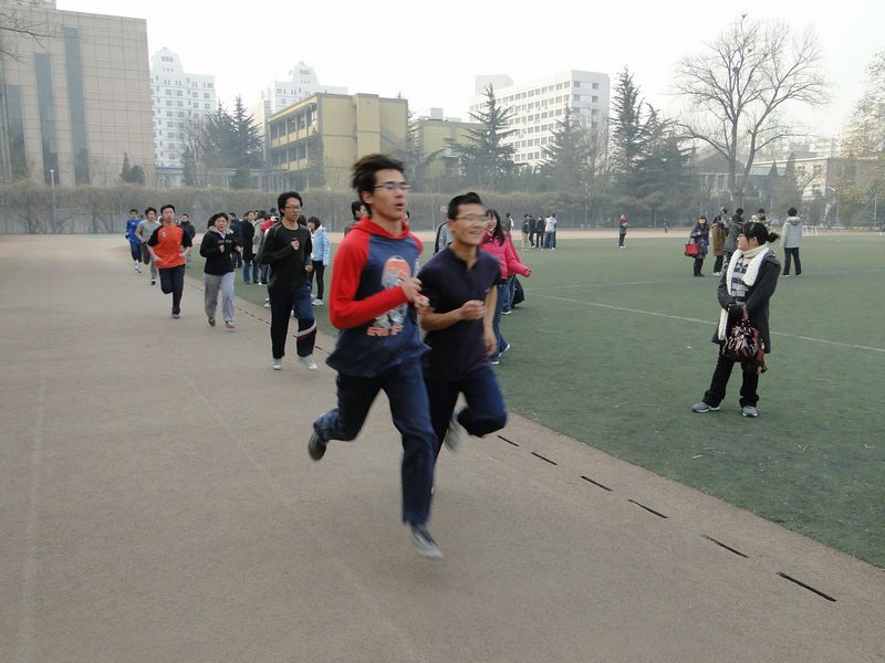 签名活动后,纪念长跑活动正式开始。从个人耐力跑到接力跑再到集体跑,那一双双翻动着的运动鞋和充满自信的身影,成为了这片冬色校园中一道亮丽的风景线。同学们通过长跑向先辈们致敬,也展现了新世纪新时期下青年学生的良好精神风貌,激情的释放既是对历史的纪念也是对未来的呼喊。