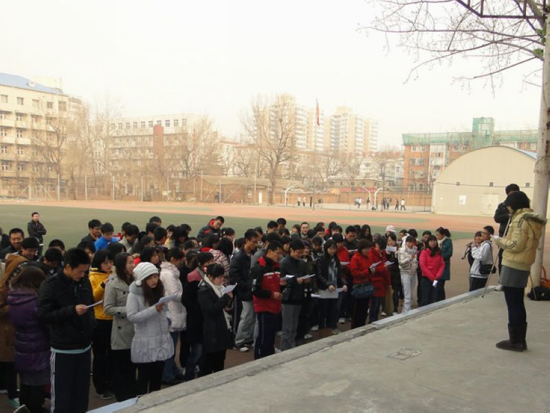 12月9日下午,研究生纪念“一二•九”运动爱国耐力跑活动在阜成路校区东区操场举行。活动以“在成长中铭记”为主题以纪念“一二•九”运动七十五周年。本次活动由研究生部团总支、研究生会、研究生党建研究工作组联合举办,得到了全体研究生的积极响应,共计150余人参加了活动。研究生部团总支书记许欣老师参加了活动并讲话。