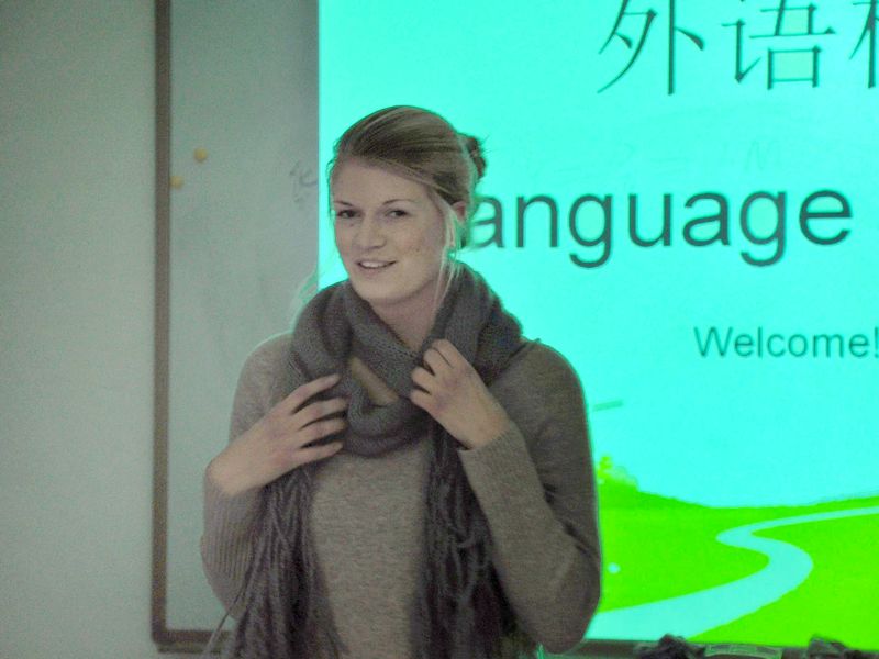 “外语桥”活动吸引了很多同学参加。活动伊始,大家用英语做了自我介绍,留学生们谈了对中国的印象,并介绍了自己的祖国。在互动环节,大家纷纷踊跃参加猜英词、脑筋急转弯、教留学生们说中文绕口令等小游戏,气氛非常活跃。在自由交流环节,参与的各位同学畅所欲言,气氛达到高潮。活动在互赠礼物中结束,小小的礼物承载着不同肤色的朋友间深深的友谊和无限的祝福。