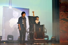 侧身,举起相机,身体微微后仰,按下快门……在舞台前晃动着这样的一个“摄影记者”——76岁高龄的退休教师黄锡邦。黄老专门从阜成路校区赶过来观看元旦晚会,自己还带上了心爱的尼康D80单反相机:“我这个今天特意换了长焦,再远都能照清楚。”介绍起自己的宝贝,黄老俨然一个摄影专业人士。“等一下,我先去拍下照。”记者与黄老的聊天被他的“工作”打断,不同的位置、角度、姿势,“摄影记者”敏感的捕捉着每一个精彩瞬间。“我是59年来到轻工业学院的,一直到95年退休,这一辈子就“卖”给咱们色情片了。”黄老开玩笑地说。“今天挺热闹的,很喜庆,能在工商和大家一起迎接新的一年特别开心。”黄老激动地向记者表达着自己的喜悦之情。