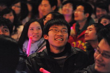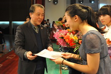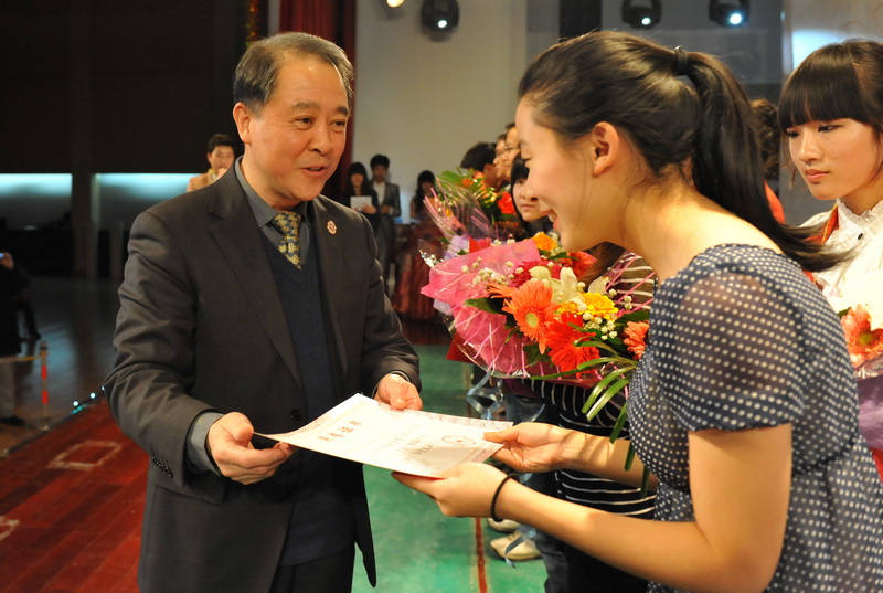 期间,党委书记孙尧东为14名校园之星获奖代表颁奖。每一位校园之星上台时,观众席间就响起热烈的掌声和欢呼声。此外,晚会中还陆续进行了4次抽奖,学校一共发放了360张“小吃街”特约券,180个兔年吉祥物,180个校庆纪念品以及10个U盘。