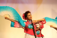 教职工队伍则是载歌载舞欢庆元旦,悠扬婉转的民歌联唱和热情优美的民族舞《赶春》,让人眼前一亮。粉红色的衣服,映衬着蓝色的蒲扇,旋转,挥扇,跳跃,一副春意盎然的优美画卷展现在观众眼前,热情的舞姿融化了冬日的冰雪,燃起了春日的希望。