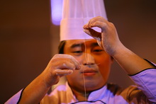 艺术来源于生活,来自于食堂、保洁、公寓、维修、车队的后勤一线职工用辛勤的劳动为观众展现了《劳动者的风采》。最吸引眼球的莫过于食堂师傅们的绝技展示,细可穿针的拉面、蒙眼切“蓑衣黄瓜”,栩栩如生的龙腾雕刻赢来阵阵掌声。