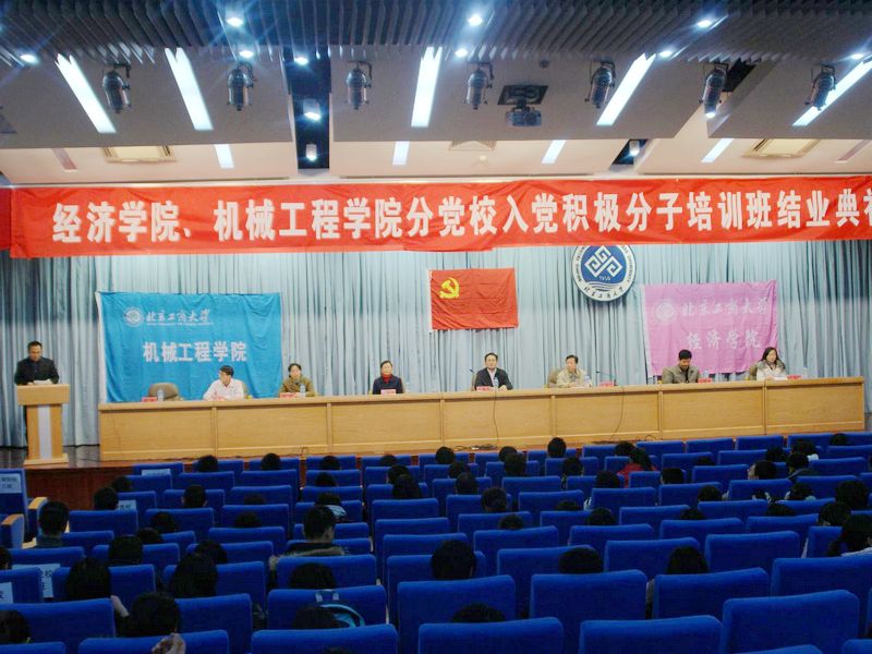 1月5日,经济学院、机械工程学院分党校入党积极分子培训班结业典礼在良乡校区举行。参加本次大会的有校党委副书记、纪委书记张德玉、经济学院党总支书记李宝仁、机械工程学院党总支书记吕东燕、经济学院党总支副书记马韬光、机械工程学院党总支副书记田宏、经济学院团总支书记王海伟、机械工程学院团总支书记郑光。本次大会由机械学院辅导员邓浩主持。
