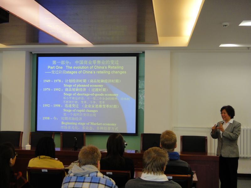 4月11日上午,中国商业联合会副会长万文英女士在阜成路校区给大家带来一场题为“中国零售业现状与发展”的精彩讲座,讲座由国际交流与合作处罗朝能处长主持并现场翻译。我校商科方向的外国留学生、研究生、本科生以及部分教师参加了讲座。该讲座由国际交流与合作处与研究生部共同主办。