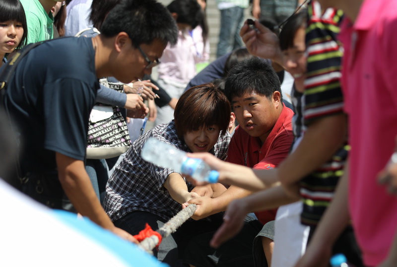 力量与智慧的比拼,激情与实力的抗衡。簇拥的人群中,不时爆发出的阵阵欢呼声,这就是拔河比赛的现场。拔河比赛,寸土必争,绳中间那象征着胜利标志的红绸面临着艰难的抉择,一次又一次地左右犹豫,始终拿不定“主意”,嘉华学院凭借着强大的力量最终争取到了红绸,也赢得了最后的冠军。汗的交织,血的沸腾,点燃着所有人的激情。长绳比赛中,穿梭的队员像水中的蛟龙,在翻腾的“海水”中尽情遨游,会计101的同学们以3分钟340个的优秀战绩成为了当之无愧的“龙王”。单人跳绳中,飞快旋转的短绳忽隐忽现,跳动的运动员身姿轻盈,最终,工商108班张昊和工商105班曹雅丹分别获得了男女子组冠军。