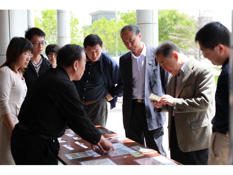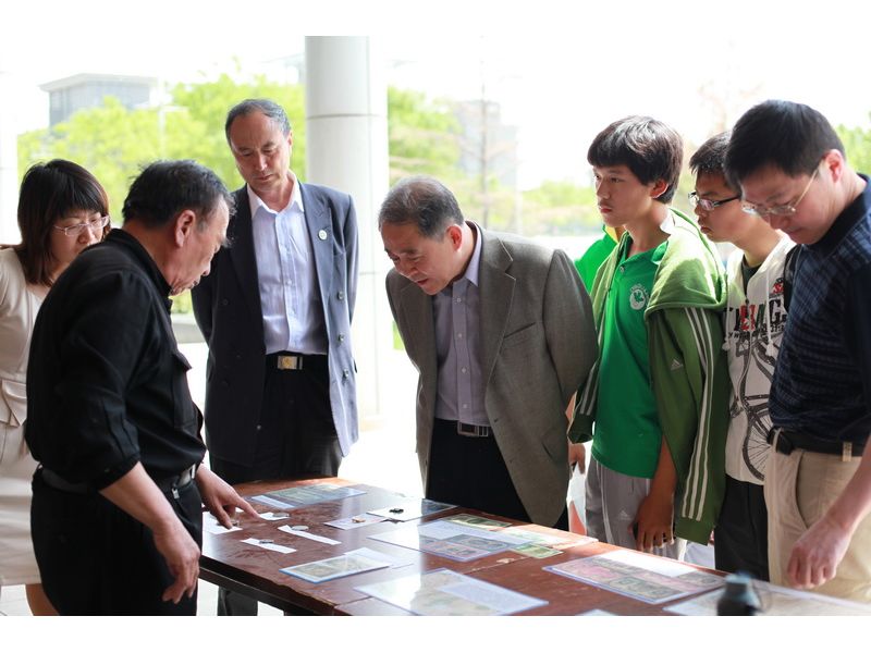个人收藏爱好者陈林老先生不仅提供了自己收藏的抗日战争时期的珍贵史料,还为参观的同学进行了详细讲解。“我收藏这些史料的目的不是为了商业利益,而是能让更多的人,尤其是当代大学生牢记历史、勿忘国耻。”陈林老先生表示,他会尽自己所能,通过实物展览及口头讲解,更好地传播中国的历史,并借此纪念中国共产党建党90周年,中国抗日战争胜利66周年。