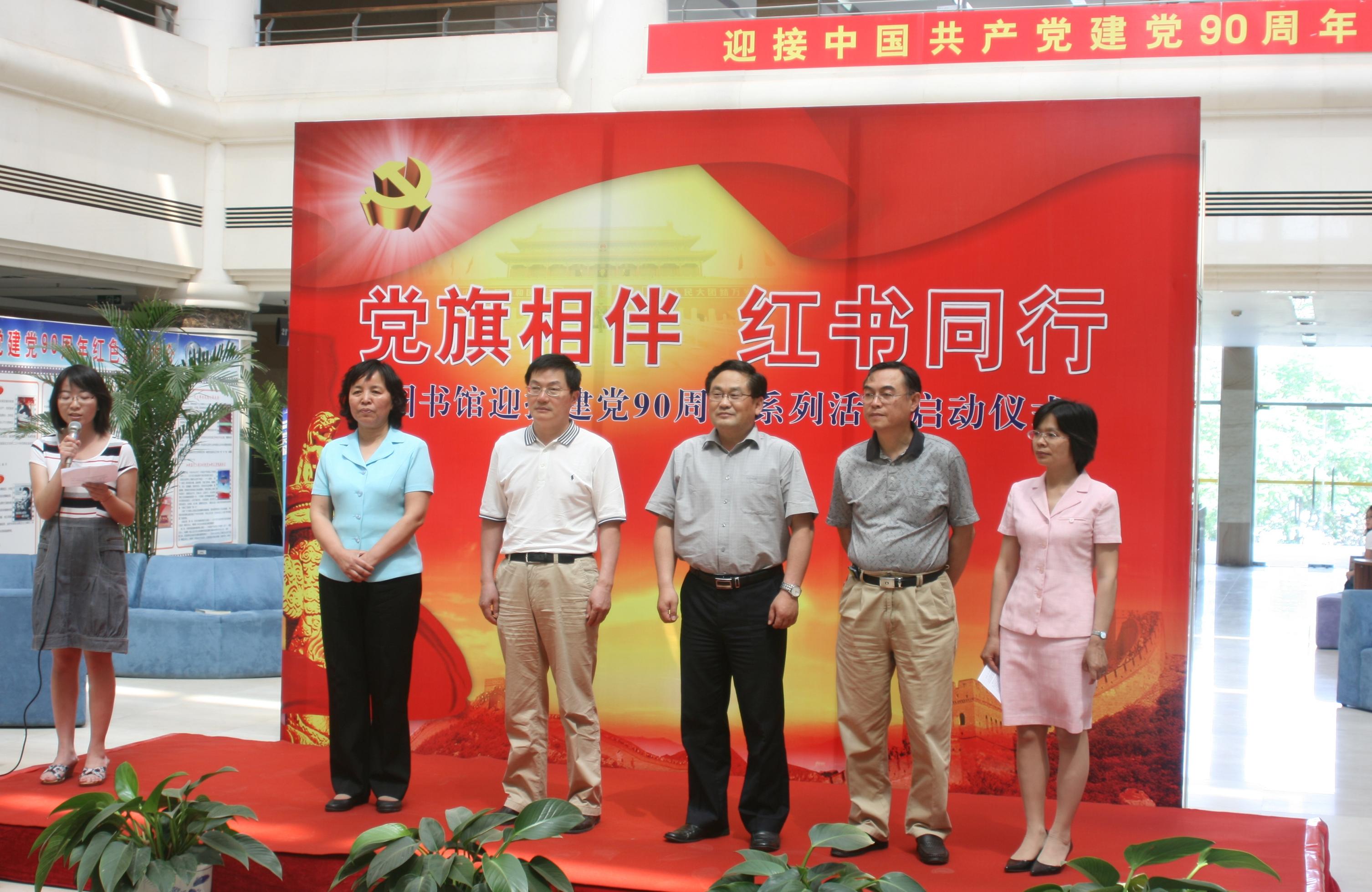 5月25日,图书馆在良乡校区举行了以“党旗相伴,红书同行”为主题的迎接中国共产党建党90周年系列活动启动仪式。学校党委副书记、纪委书记张德玉、副校长李朝鲜出席了启动仪式。