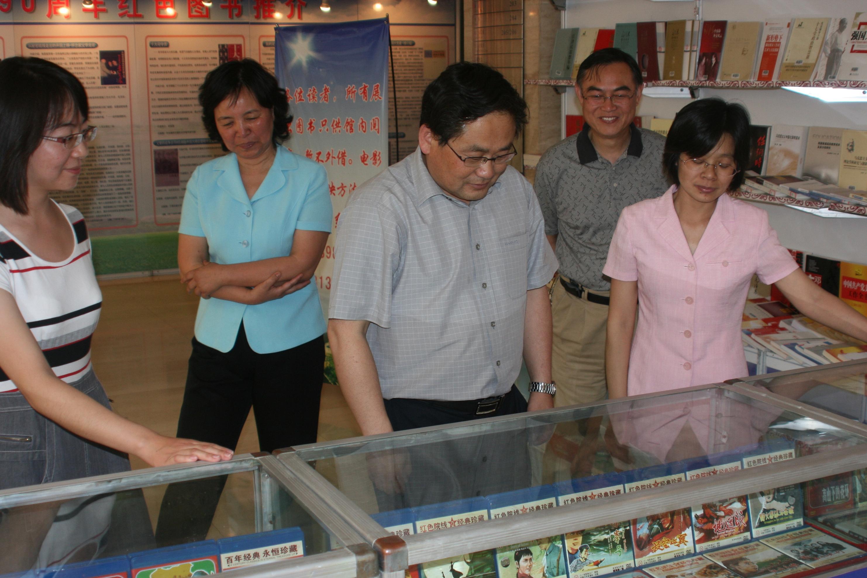 启动仪式结束后,张德玉书记和李朝鲜副校长在图书馆馆长高润芝、机关二总支书记兼副馆长郭一行等陪同下,饶有兴致地观看了“红色图书推介” “红色电影展播月”的宣传展板以及“红色图书”展架。