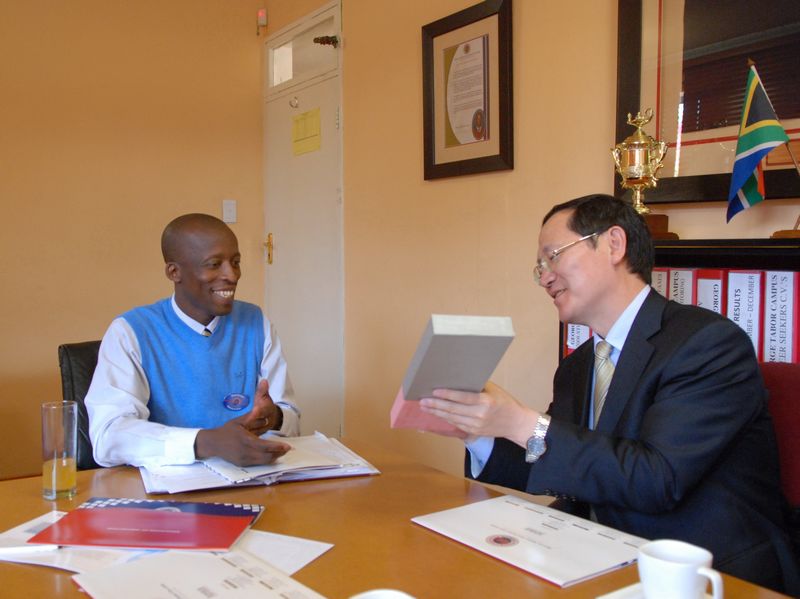 5月23日,在位于约翰内斯堡的南非豪敦省西南教育学院,谭向勇校长与南非大学联盟各有关大学校领导进行座谈。双方交流了两国大学的人才培养和管理体系,介绍了彼此的办学特色和发展蓝图。谭向勇提出,愿进一步推进南非大学联盟各高校与我校之间的师生交流,欢迎南非学生利用两国政府和学校奖学金的支持来我校留学。南非大学联盟的与会领导表示,将努力促成包括约翰内斯堡大学、金山大学、开普敦大学在内的南非大学联盟成员单位共同开展与我校的合作。谭向勇一行在有关大学领导的陪同下参观了约翰内斯堡大学和开普敦大学校园。约翰内斯堡大学成立于2005年,学校由原兰德阿非利加大学、金山理工学院和维斯特大学的东兰德校区合并组成,属于综合性大学,具有世界先进的设备设施,高水平的师资队伍,世界领先的学术水平和科研成果。开普敦大学是南非最古老的大学,也是南非共和国最早的大学,初建于1829年,是非洲大陆的学术研究中心之一,是世界上一百所著名大学之一,学科齐全,学术水平居世界前列。南非是金砖国家之一,此次访问将推动我校与南非大学建立进一步的联系。