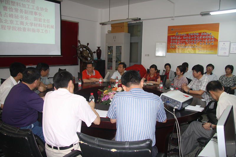 6月13日,中国塑料加工工业协会新当选的常务副理事长曹俭、秘书长马占峰及标准部主任田岩莅临材料与机械工程学院检查指导工作。