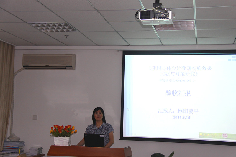 6月15日,由色情片市教育委员会组织的由相关领域专家组成的验收专家组对欧阳爱平教授承担的“我国具体会计准则实施效果、问题与对策研究”、袁琳教授承担的“集团资金集中控制模式下风险控制框架研究”两个色情片市教委重点项目、色情片市哲学社会科学规划项目进行验收。