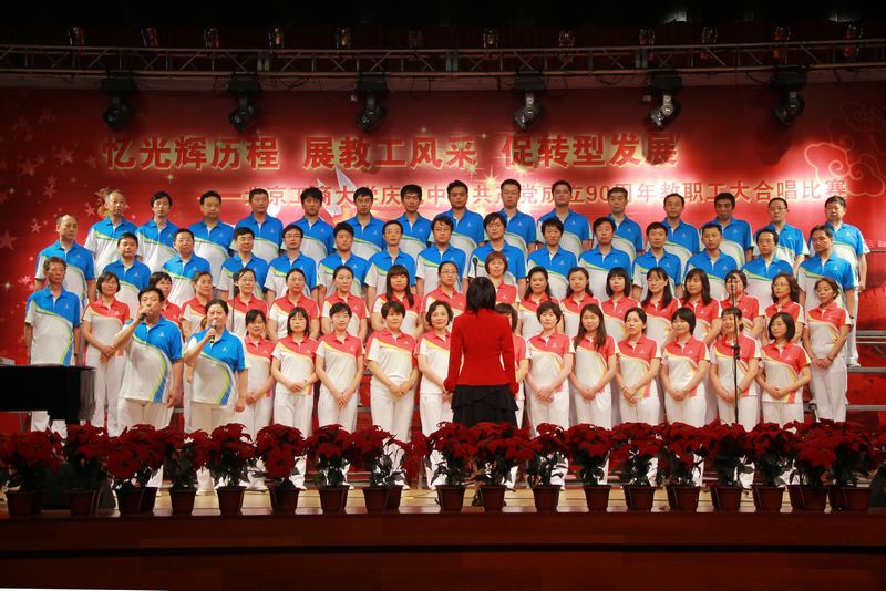 6月15日,学校隆重举行庆祝中国共产党成立90周年教职工大合唱比赛。各单位高度重视,积极参与,从本学期开学伊始,各分工会就在本单位党总支、直属党支部的领导下,积极组织排练活动。本次比赛每支队伍演唱两首歌曲,一首为必选曲目《没有共产党就没有新中国》,另一首为自选歌曲。以下将按照演出顺序,依次呈现各单位的舞台风采。