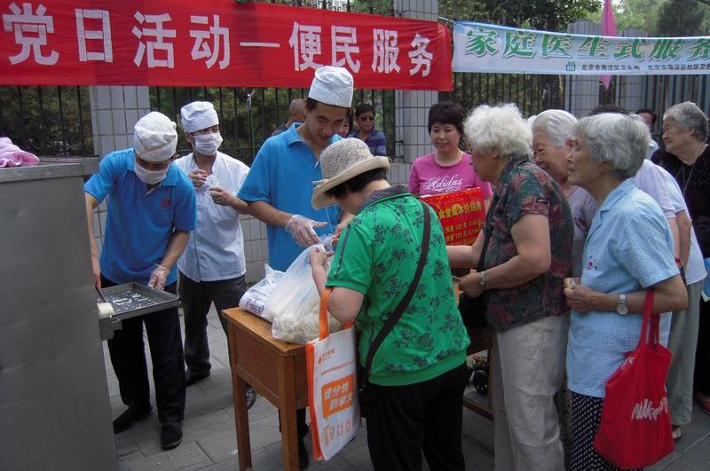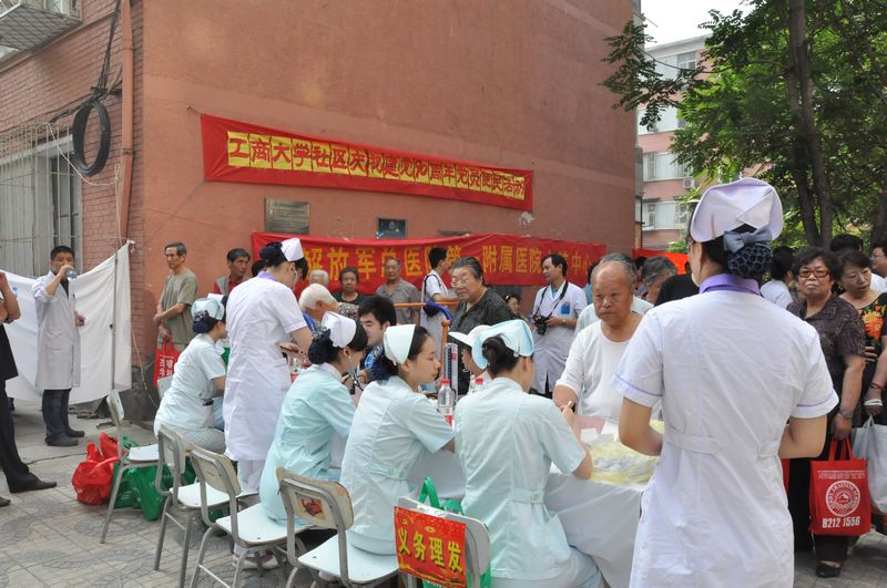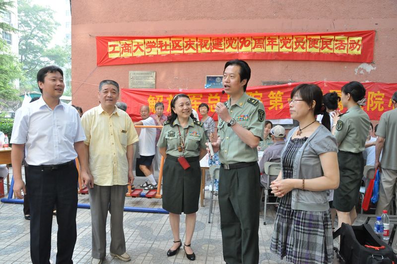 为庆祝中国共产党建党90周年,后勤党总支、后勤分工会联合三O四医院、社区居委会,以“牢记党的宗旨,热情为民服务”为主题,组织党员、入党积极分子、工会会员和社区服务人员共84人,在阜成路校区东、西家属区开展便民服务活动。