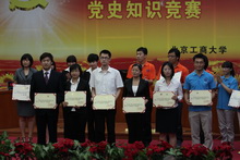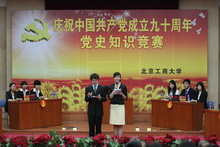 6月24日下午,学校纪念建党90周年党史知识竞赛决赛在良乡校区模拟法庭举行。校领导孙尧东、卢思锋、张德玉和部分党总支书记、副书记、学生代表观摩了决赛。校领导为获奖代表队和优秀个人颁奖。