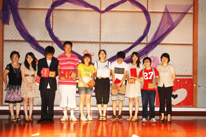 Starry Night表彰大会是今晚的主要内容之一,主要表彰一学年来在学习生活中表现出色的个人和集体。经师生投票,共评出2011年度“感动外语人物”7名,他们是:学习大明星1名,文艺大明星1名,开心果1名,优秀宿舍2个,五星班集体2个。到会的老师和学院领导分别为他们颁发了奖状和奖品。