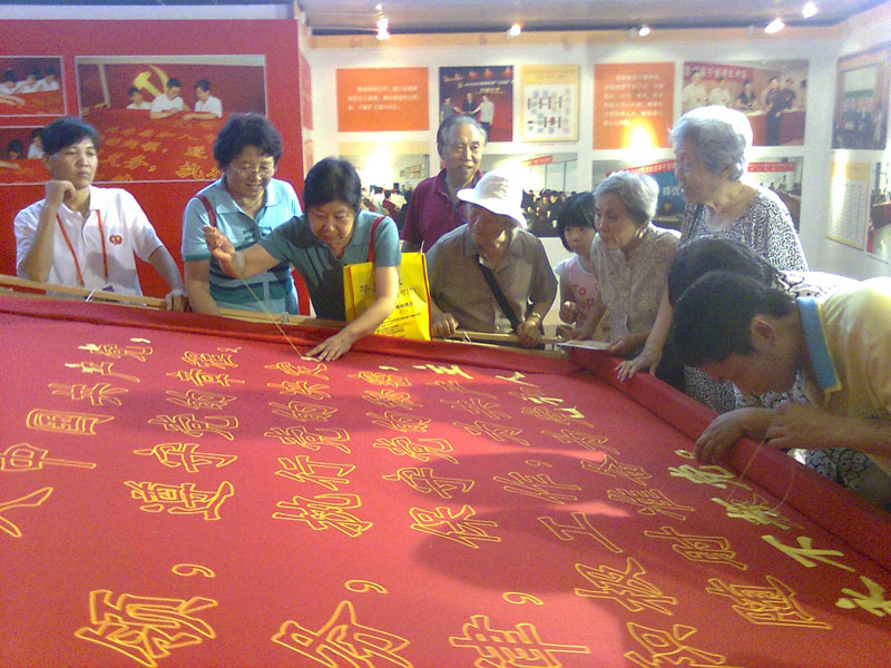 在参观临结束时,大家纷纷把自己写有对党无限深情、对党表决心的红色《百万党员寄心语》明信片投入现场信箱。大家还来到《入党誓词》大型刺绣绒布前,争先恐后拿起绣针,亲手为入党誓词绣上一针,表达出自己对党的无限忠诚,永远跟党走的坚定信念!