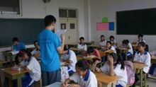 随后,我们到达各自的班级,与孩子们近距离的接触。当然,一个好的开始离不开相互介绍。音乐相随,欢声笑语不断,我们和孩子们开始了初步的认识。在大家的共同努力下,各班推出了新的口号、班号。不仅如此,两块空白的黑板上也填满了实践团各位成员与孩子们的印迹。孩子们和我们一起聊天,彼此互道各自的想法,相互打成一片,更有歌声《爱因为在心中》强力助阵,感染了孩子们,也让我们自己更坚定了信念,我们一定会成功的!