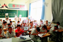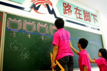 今天是正式开始教学的日子,各个课程逐个开展,其中最吸引人眼球的莫过于新鲜刺激、妙趣横生的辩论课。经济学院辩论队是一只优秀的队伍,在许多首都高校辩论赛中都取得过突出成绩,成员们引领着四个班级71名同学进入了一个新奇的思辨世界。历史课上老师们的生动讲解深得孩子们喜爱;英语课上老师用流利的口语向孩子们展示了大学生的知识素养,教会孩子们许多发音技巧和学习方法;美术课上同学们集思广益,用成员们准备的绘画工具设计有关建党90周年的字体画,孩子们聪慧可爱,构思新颖,作品各有特色,表达了对党的热爱和祝福。