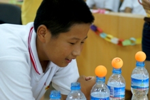 在一个个精彩的节目后,精心设计的小游戏开始了,“口水大战”、“数青蛙”、“成语接龙”、“你来比划我来猜”……小游戏引发了同学们的阵阵笑声,现场的欢乐气氛让大家忍俊不禁。“翠绿的袜子”,学生机智地回答;“含情脉脉”,组员逗乐的比划,给大家留下了深刻的印象,大家哄堂大笑。