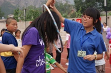 在趣味运动会中,各年级分别组成一个队。活动本着 “全员性参与”的目的,培养孩子们团结协作的能力。比赛包括“三人四足”、“夹球奔跑”、“传呼啦圈”等项目。期间,孩子们不免跌跌拌拌,却依然坚持奔向终点,现场笑声、掌声、呐喊声不断。活动还设有“亲子赛”,使当地百姓也有机会参加,现场气氛变得更加融洽、热闹。