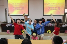 文艺汇演上,长沟中学的孩子们让大家眼前一亮。他们不仅奉上了精心编排的话剧、歌舞剧,还给大家展示了武术、萨克斯演奏等出色的才艺。而实践团的成员们也毫不落后,无论是任和、王志远两位学长演唱的流行歌曲,还是让人振奋的啦啦操、搏击操,都给我们留下了很深的印象。演出的最后,全场人员齐唱歌曲《我相信》,这首积极向上的歌曲也将本次实践活动推向了最高潮。