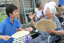 首先,计信实践团二分队的30余名团员在清晨拿着慰问品去看望今康老年护理院的35名老人。一开始,为了让老人们开心愉快,实践团的团员们进行了文娱演出。无论是张硕同学的激情独唱《红星照我去战斗》,还是支教组同学们搞笑的三句半,亦或是马训翔同学的魔术表演都给老人们带来了许多欢乐。特别是当实践团团员们唱起红歌时,台下的老人们都自发地跟着哼唱起来,场面感动与温馨。