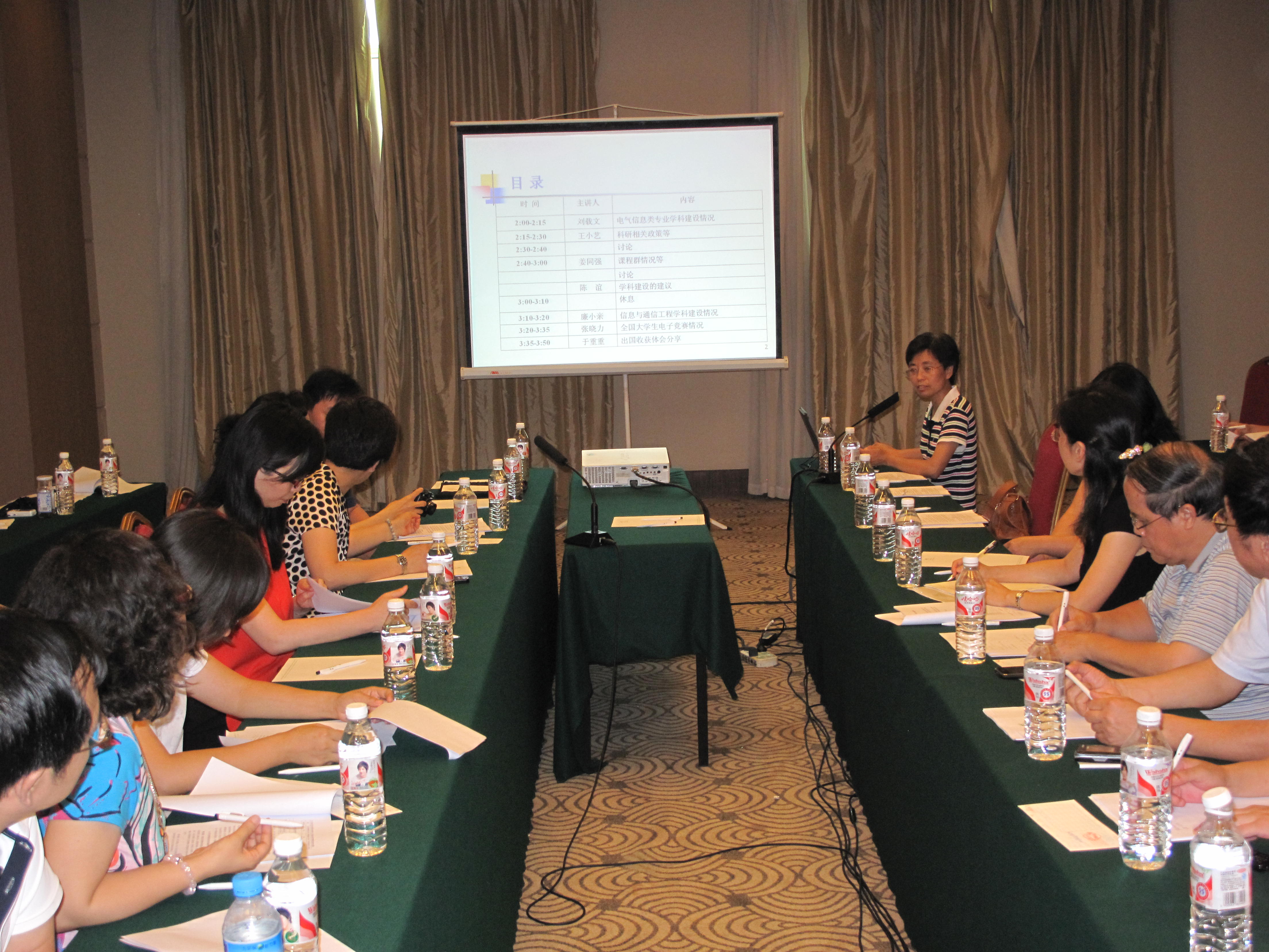 7月12日至13日,计算机与信息工程学院召开电气信息类学科专业建设工作会,总结近期的工作,讨论电气信息类学科专业建设与本科课程群建设问题。党总支书记陈谊教授、院长刘载文教授、副院长郭培源教授、姜同强教授、左敏副教授,科技处副处长王小艺副教授、计算机系主任刘宏志教授、电子信息系主任、自动化系主任、实验中心主任以及全体教师参加了此次会议。会议由电子信息系主任廉小亲教授主持。