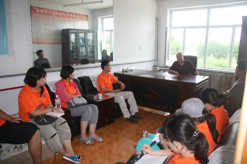 上午不到8点,我们便来到了永德村。永德村党支部书记热情地欢迎了我们。他向我们简单介绍了永德村的基本情况及特色产业。永德村耕地面积9992.18亩,多山地,主要种植玉米和绿豆。永德村辖2个自然屯,有401户,1337口人,其中有260余人外出务工。突泉县永安镇倡导各村进行“一村一品”个性化产业建设,永德村积极响应号召,在今年3月建立了织衣厂,属高度密集型产业,解决了村里一部分人的就业问题,促进了农村经济的发展。之后,我们来到织衣厂进行了参观。现在织衣厂有50余名员工,加工“星火”品牌的服装,销售到辽宁溪柳的批发城。