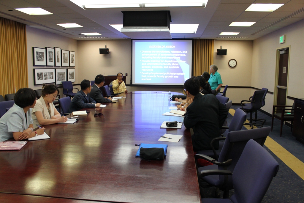 美国当地时间8月4日,我校学科带头人赴美培训团为期20天的培训正式开班。加州大学戴维斯分校(UC Davis)非常重视,热情接待,第一堂课就由副校长兼教务长芭芭拉•霍尔威茨(Barbara Horwitz)教授亲自授课,主题是戴维斯分校的学科带头人队伍的引进、管理和发展。芭芭拉副校长详尽介绍了戴维斯分校乃至整个加州大学的人才引进机制和不同层级教师的考核方式,以及学校以人为本的用人理念。