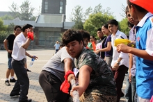 上午9:10,文体馆前一派“剑拔弩张“的气象。“绳子往下压”,“一使劲,二开始往后拉”,赛前各队队员相互鼓劲,寻找着比赛的最佳状态。一声哨响,第一轮比赛开始,28名队员,力量凝聚在同一条绳子的两端。“一、二,一、二”的口号声帮他们达成了心灵的默契。红色绸带在微风中摇曳着,在双方队员紧张的气氛中显得格外悠闲。