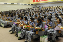 同学们认真倾听着每个感人肺腑的故事,掌声不断。四营十三连三班的李硕感动地说,这些通过普通的百姓讲述他们亲历的生动故事,展现了党和人民的情谊,很大众化而且贴近生活,十分真实,令人感动。宣讲结束后,学生代表分别向九位宣讲人献花,表达了尊敬与感谢之情。