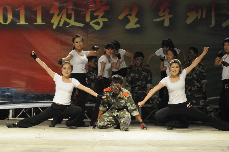观赏了2011级新生的精彩表演,教官们也“不甘示弱”,纷纷登台亮相。