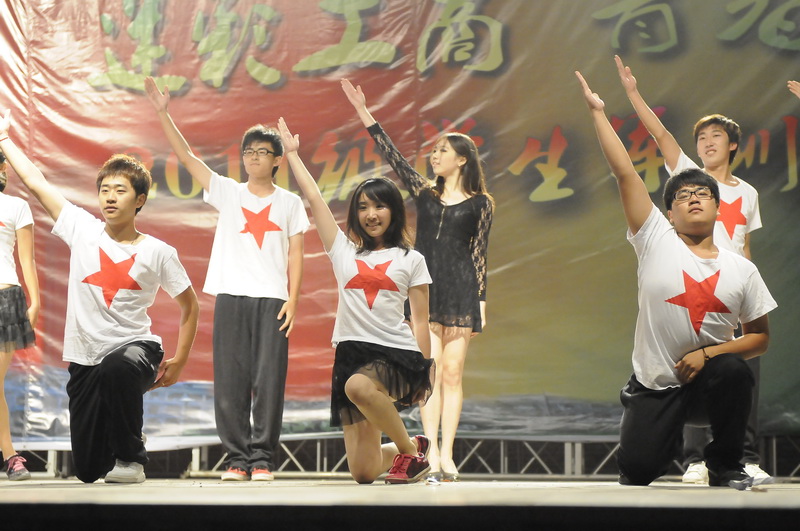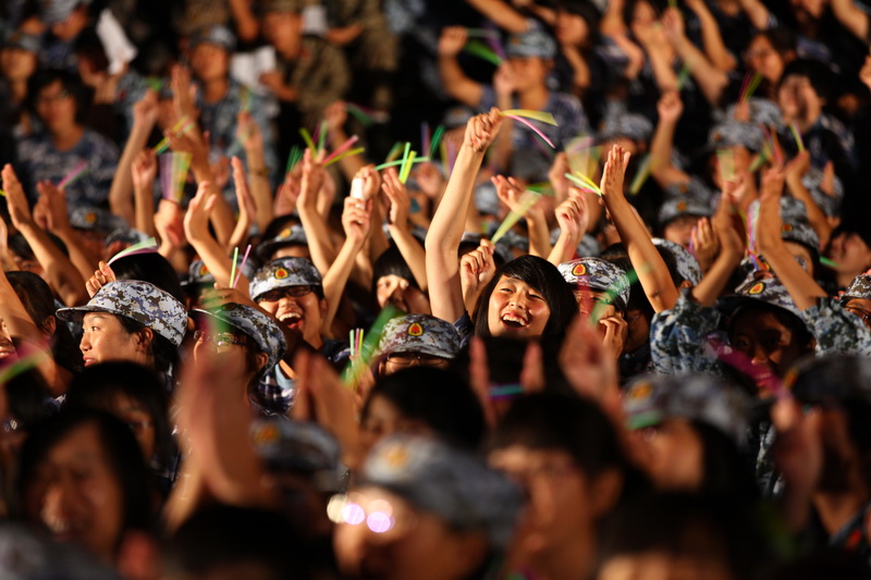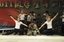 随后,来自二营的同学们演唱了他们改编的《真心英雄》和《团结就是力量》,唱出了大一新生内心的苦与累、喜与乐。一营的歌舞剧《Dream high》讲述的是一名因军训太疲惫而睡着的男生在梦中发生的事情。激情的舞步令观众大饱眼福。