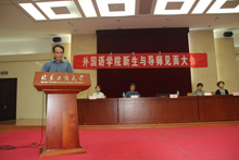 9月14日下午在良乡校区,外国语学院召开2011级新生与导师的见面大会。党总支书记闫冀生、院长杨怀恩、副院长张卫晴、英语系主任王红莉以及20余位新生导师和全体新生参加了大会。大会由党总支副书记杨秀萍主持。