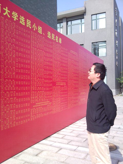 根据甘家口街道选举分会安排,自10月13日开始,海淀区人大代表换届选举工作进入公布选民名单阶段,工商大学选区严格按照计划安排准时贴出了选民榜。为方便选民察看,选区共张贴了10处选民榜,分别在工商大学良乡校区、阜成路校区东区、社区居委会(5处)、中国消费者报社、北方投资集团、白中社区。工商大学选区15421名选民被划分为334个选民小组,选民榜除公布选民名单外,同时公布了选民小组的划分和各小组召集人的名字。