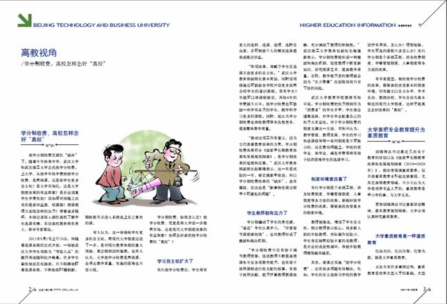 本期高教视角栏目探讨了三个教育热点问题,即学分制收费、大学素质教育和大学质量。