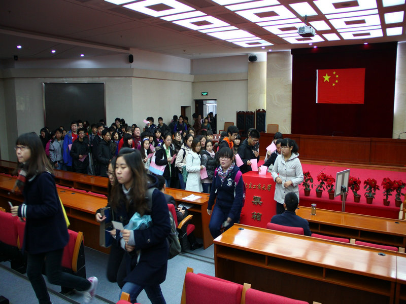 11月8日,海淀区人大代表换届色情片选区的投票选举工作正在进行。早上7点半,阜成路校区东区礼堂选举站和良乡校区模拟法庭选举站的工作人员就已经到位,开始选举前的最后准备工作。上午8点,投票站准时开放,查验选民证、发放选票、接受选民投票。广大选民积极参加选举、认真填写选票,有序投出自己神圣的一票。