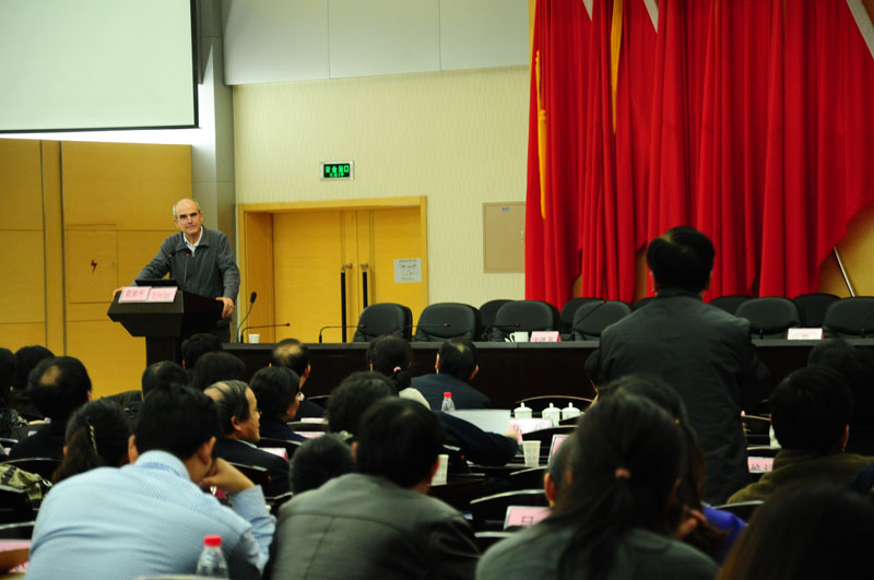 对外经贸大学阳和平(Dr. Fred Engst)教授以“中美教育思想差异” 为主题,从统计学课程教学入手,通过个人教学的亲身经历,对如何上好一门课提出了诸多可借鉴的手段、方式方法,对中美两国教育教学思想的差异进行了幽默风趣的分析和反思。