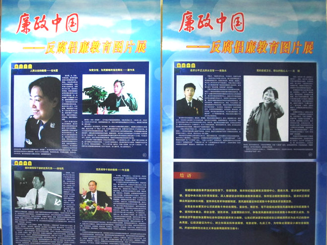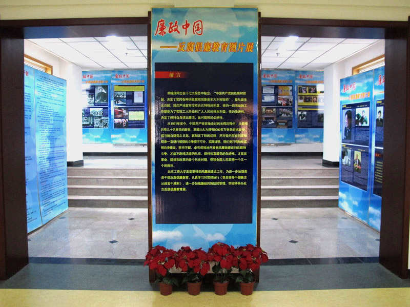 为进一步加强党员干部反腐倡廉教育,认真学习和贯彻执行《党员领导干部廉洁从政若干准则》,进一步加强廉政风险防控管理,学校党委宣传部、纪委制作了“廉政中国----反腐倡廉教育图片展”,现在阜成路综合楼三层展出。