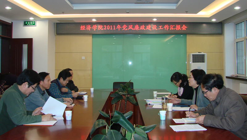 在听取经济学院的情况汇报后,张耘副校长指出,经济学院发展态势良好,工作有超前意识,许多工作取得可喜成绩。在二级单位加强党风廉政建设,目的之一是要加强二级管理,要树立为师生服务的意识,践行党的宗旨,不断加强班子建设。要抓好《廉政准则》的学习与贯彻落实,为学校的转型、事业的发展营造一个良好的环境,一种和谐、关爱的氛围。