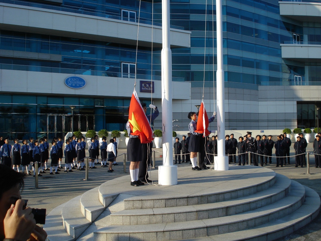 香港会展中心广场升旗仪式 香港科技大学全貌——临海处是学生公寓