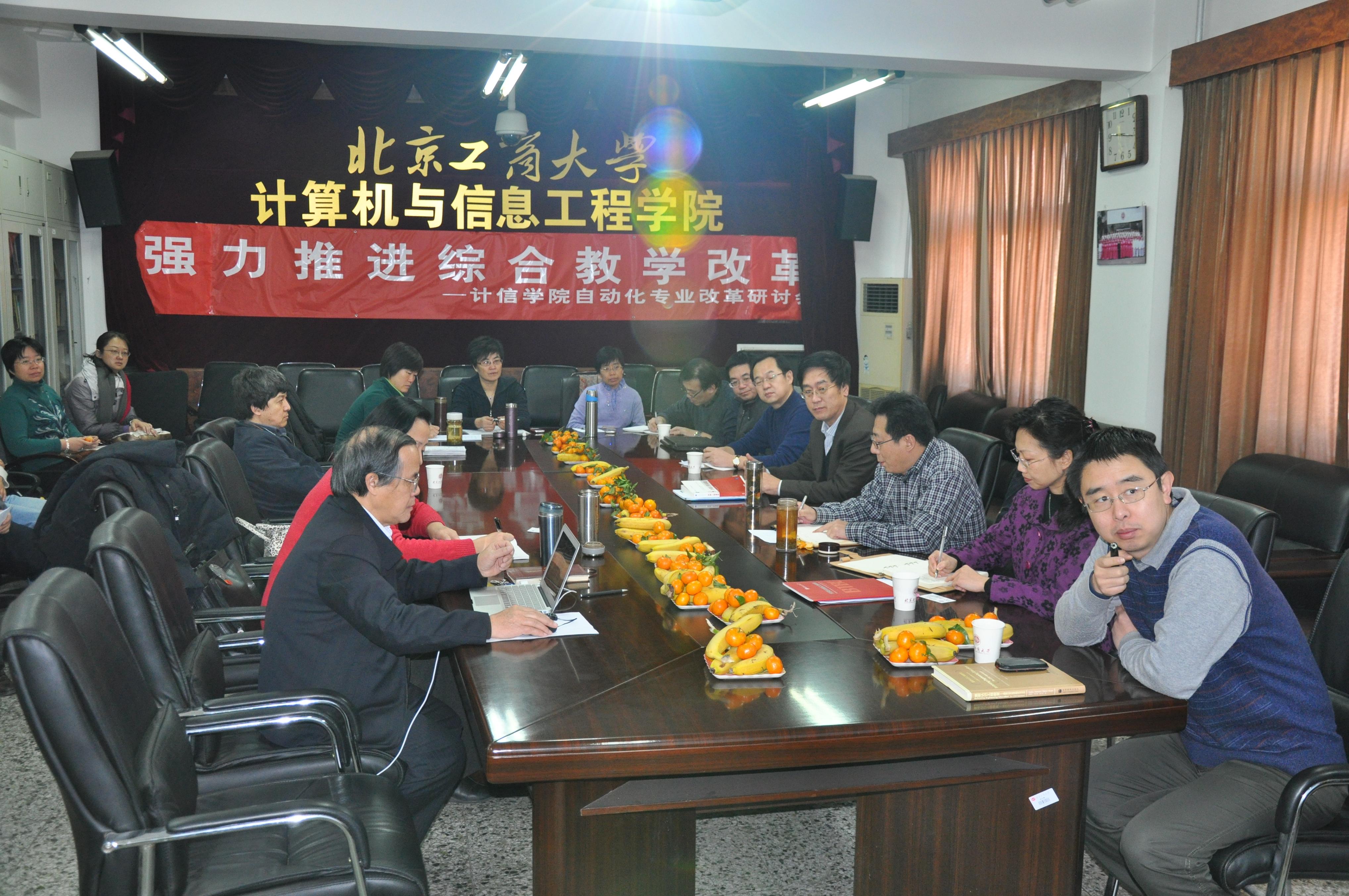 12月17日下午至18日下午,计算机与信息工程学院在阜成路校区召开为期1天半的“强力推进综合教学改革——自动化专业综合教学改革研讨会”。李朝鲜副校长、方德英副校长及教务处张晓堂处长参加了会议并发表讲话。会议由计信学院刘载文院长、姜同强副院长及自动化系薛红主任主持。计信学院综合教学改革领导小组全体成员、自动化专业全体老师、学院各系主任及《自动化专业深度课程改革》项目的参与老师等参加了此次研讨会。