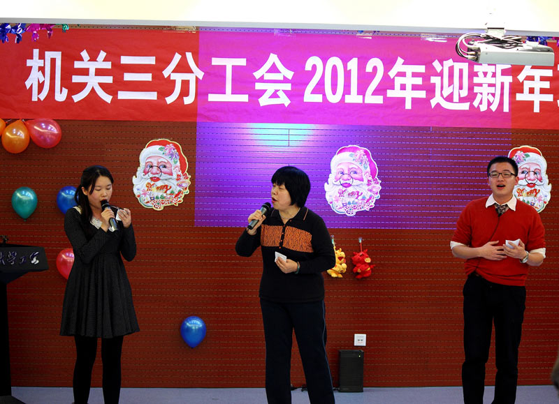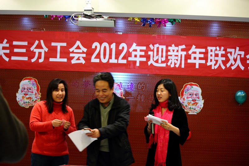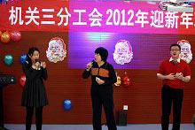 12月30日下午,机关三分工会在学校教工之家举办了2012迎新年联欢会。副校长李朝鲜、方德英莅临现场参加联欢活动,校工会、机关二总支负责人及机关三分工会的全体教职员工,共七十多人参加了联欢会;整台联欢活动在和谐、友爱、欢乐、祥和的气氛中进行。