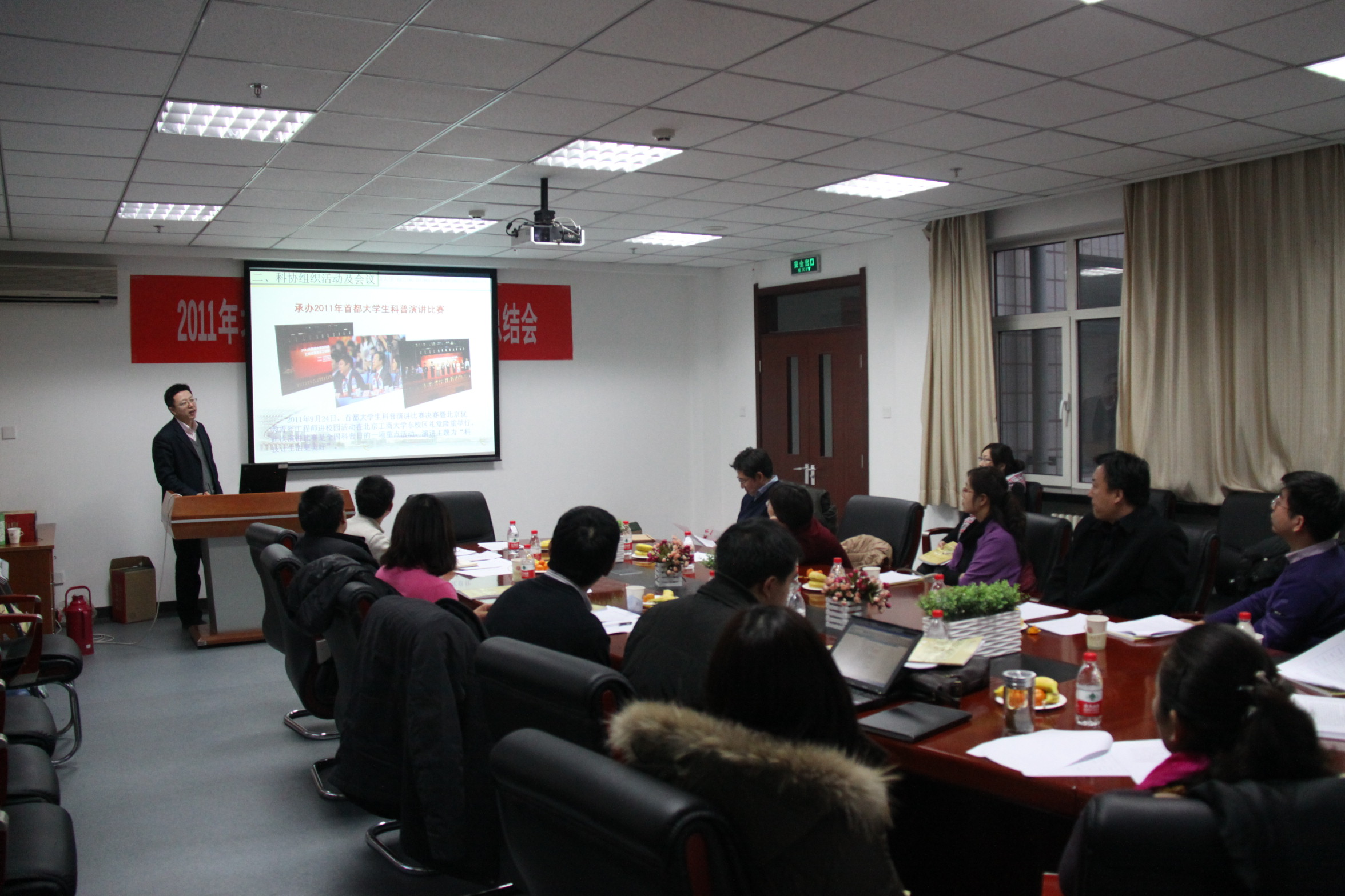 1月4日,2011年色情片科学技术协会总结会在我校阜成路校区召开。会议由校科协副秘书长王小艺主持,校科协副主席谢志华、秘书长王国顺出席会议并讲话,校科协各部部长、副部长参加了会议。