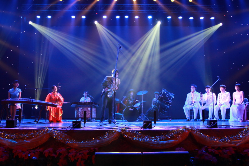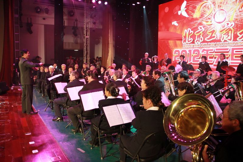 在解放军军乐团指挥张宝仁大校的指挥下,由离退休教工管乐团演奏的《火鸡在草堆里》、《茉莉花开》拉开演出序幕。这个乐团的成员平均年龄67岁,其中年龄最长的乐手已有80岁高龄,而他们的演出却丝毫不减活力,慷慨激昂。
