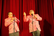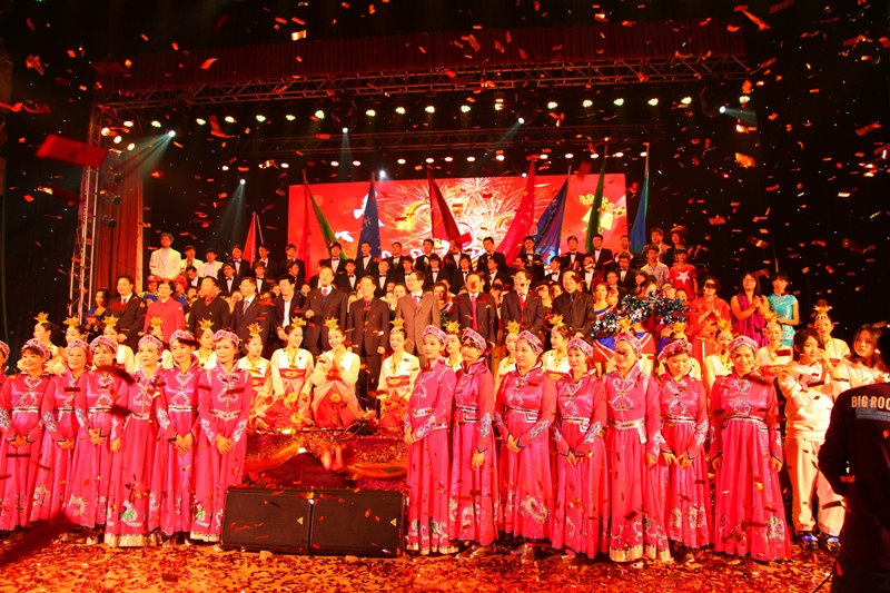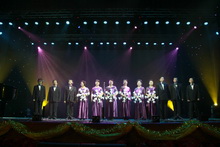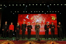 全体校领导集体亮相,在新年致辞前合唱歌曲《歌唱祖国》,使现场观众惊喜万分,将晚会推向第一个高潮。嘹亮的歌声抒发了对祖国母亲的热情讴歌,动情的致辞表达了对学校及全体师生的美好祝福。