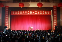 19时,晚会正式拉开帷幕。由学生记者团校园电视台制作的开场视频以生动的画面回顾和梳理了近些年的学校大事:从奥运会到校庆,从军训到毕业典礼,从教学、文化活动到学科建设,从基础建设到科研发展……视频还深情回眸了2011年学校的大事和晚会的筹办工作,引起现场观众的强烈共鸣,激发了广大师生对2012年的美好希望和憧憬。